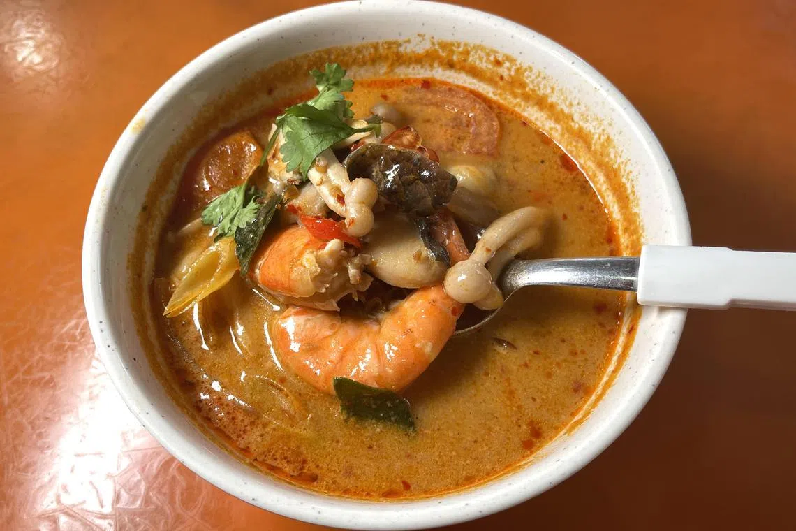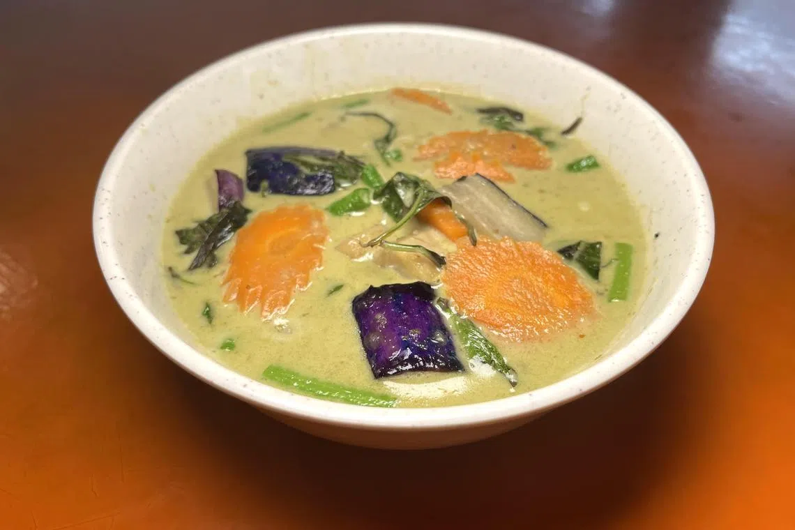 Do not let the creamy green curry chicken ($6) lull you into thinking that it is harmless. It packs heat, along with the rich flavours of spices such as coriander and galangal. You get substantial chunks of boneless chicken thigh meat, with carrots, long beans and brinjal.