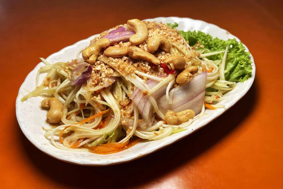 Even the mango salad ($5.50) is served in a hearty portion. It is well-balanced with savoury, sweet, tangy and spicy flavours, and the topping of cashew nuts adds a touch of opulence.