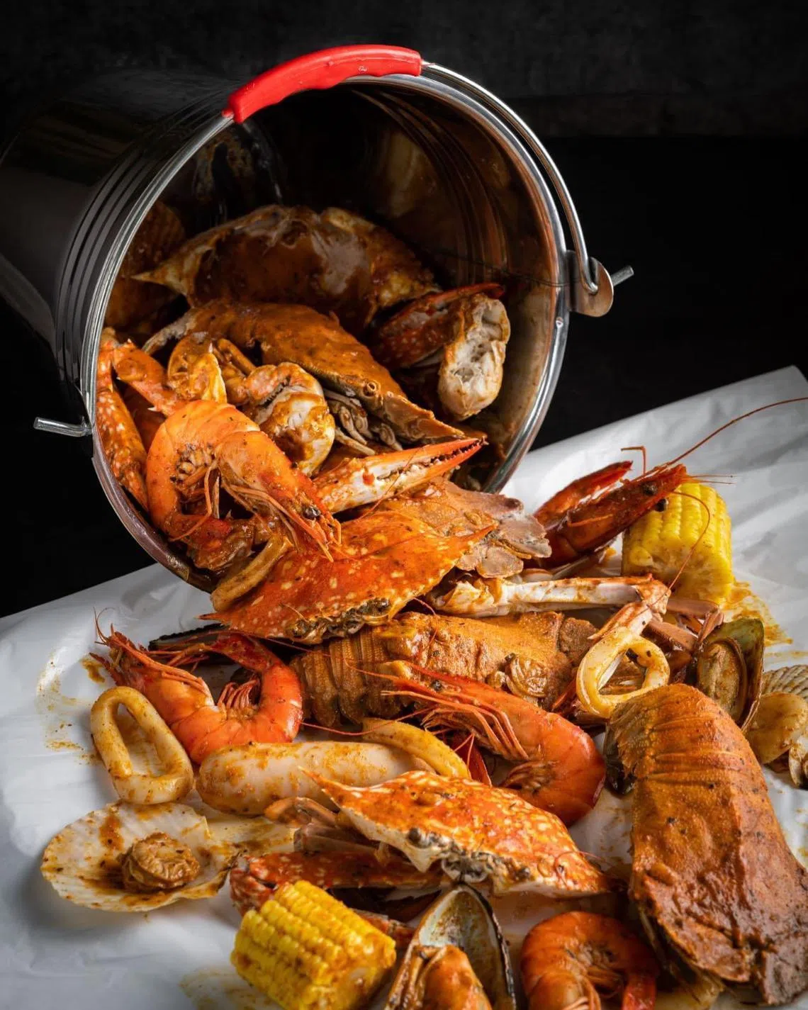 That is how I spend two hours at seafood restaurant Bucketta’s new Downtown East outlet one Thursday afternoon. Its signature seafood bucket (from $39.90++) comes in five sauces, including Thai cajun and garlic butter, and overflows with prawns, squid, crayfish, scallops and even Alaskan crab legs, though premium ingredients will cost you more.