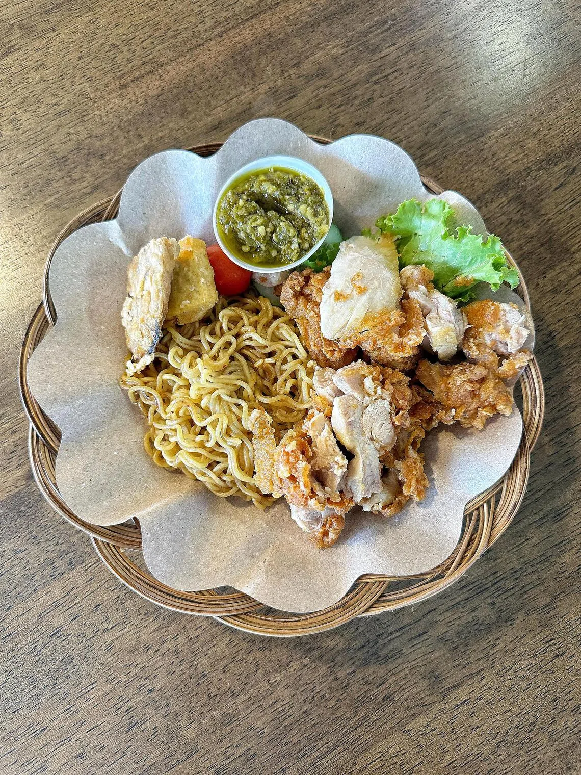 You can have fish, prawn or squid too, and have them with rice. But my usual order is Indomie Ayam Geprek ($8.50) because I believe in going big. The little pile of instant noodles is just plain satisfying. Served alongside is a square of fried firm tofu, a slice of tempeh and, in a concession to health, a cherry tomato and a lettuce leaf.