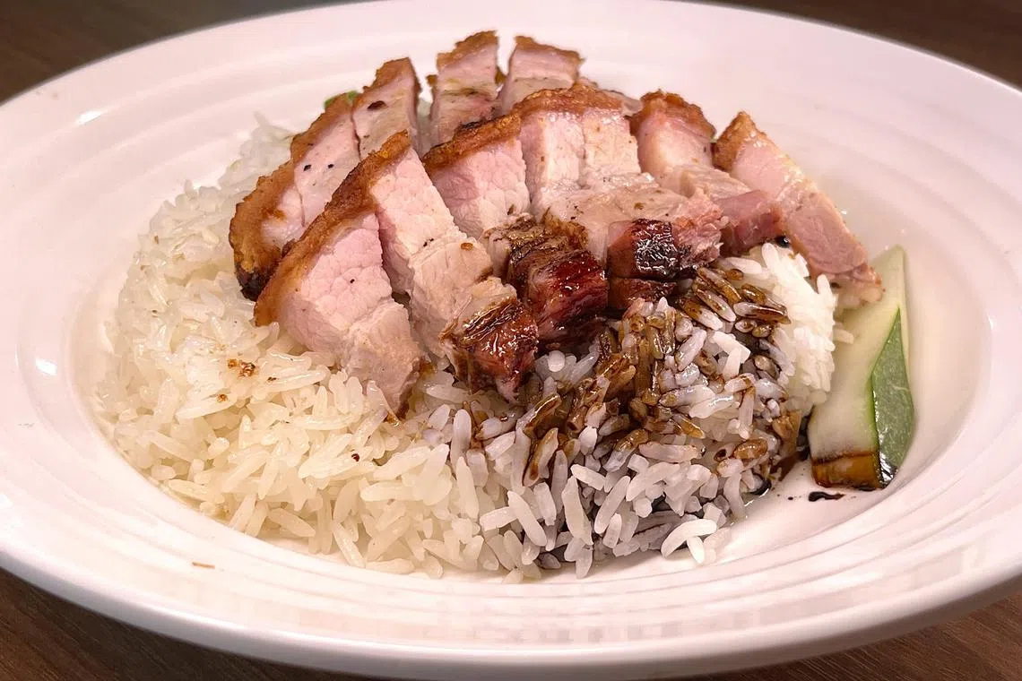 Roasted Pork Rice at Cantonese Roasted at Sembawang Hills Food Centre.