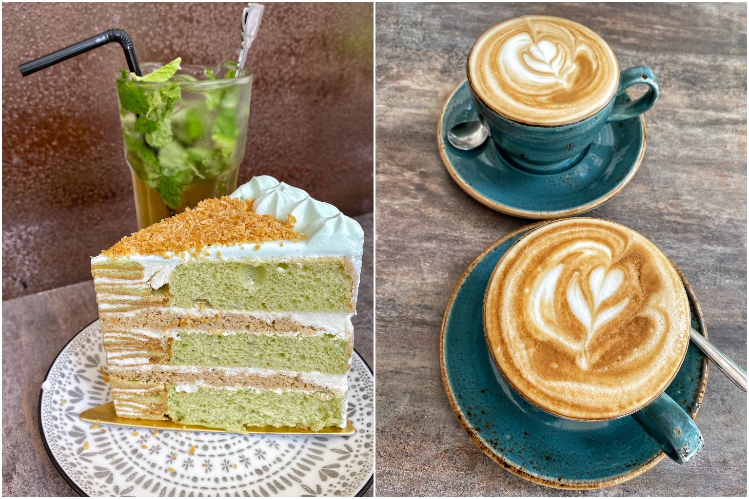 Ondeh Ondeh Cake (left) and Gula Melaka Cappuccino from Niche Savoureuse. PHOTOS: TAN HSUEH YUN