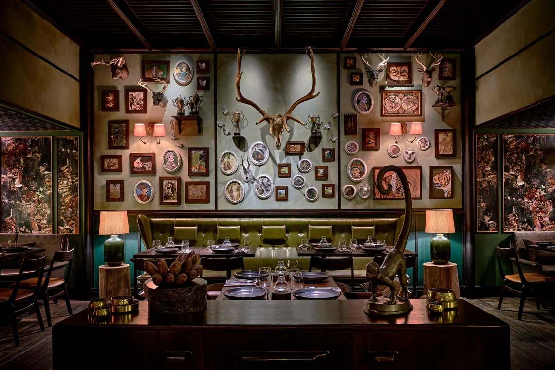 It overwhelms before the first bite even hits the table, spinning you through rooms crammed with memorabilia. Think American film-maker Wes Anderson on a trip through Delhi, a kind of kitschy fantasyland for colonial nostalgists wrapped in ornate wallpaper and studded with vintage firearms.