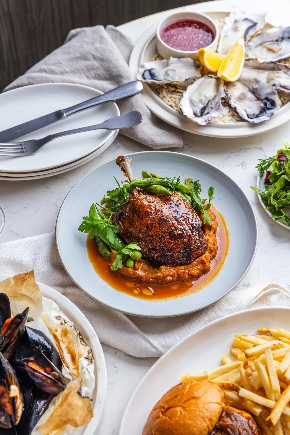It features a wider variety of dishes, including fried baby squid ($15), Irish duck confit ($28) served on mashed sweet potato and greens, and Australian Blue Mussels in A Bag ($34) cooked in a savoury cured ham and caper-infused white wine broth.