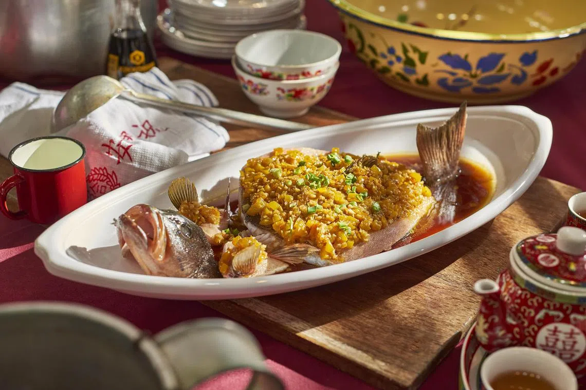 The sprawling indoor 110-seat dining room is decked out for the Gram, with a live seafood section, a decorative barber shop, nostalgic memorabilia, as well as red chairs and green banquet tables.