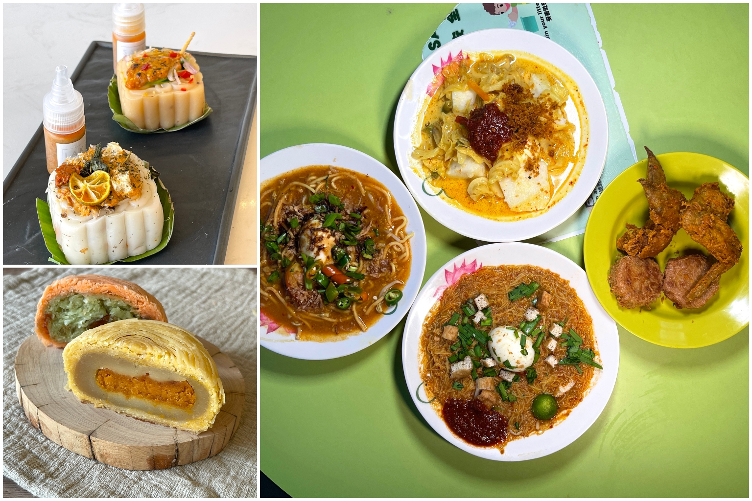 (Clockwise from bottom left): Mooncakes from Delcie’s Desserts And Cakes, and local specials from Aziz Jaffar Muslim Food.