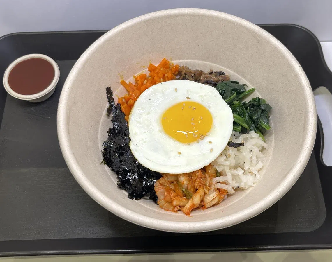 Get the signature Mugung Bibimbap ($15.20), a colourful bowl of plump grains of Korean rice, topped with stir-fried radish strips, tender carrot, marinated napa cabbage, spinach and braised mushroom.