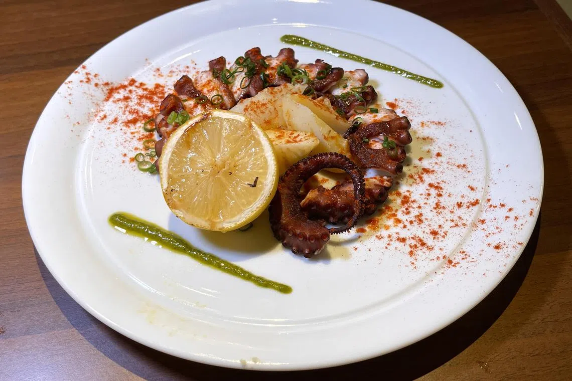 Another grilled item to order is the Octopus Galician Style ($26++). The tender octopus is savoury on its own with the smoky fragrance of charcoal, but try it with the housemade basil pesto on the plate. It is a sign of the attention to detail that Mr Ishida pays to his cooking. There is also half a grilled lemon, tender potato cubes and a generous sprinkle of smoked paprika.