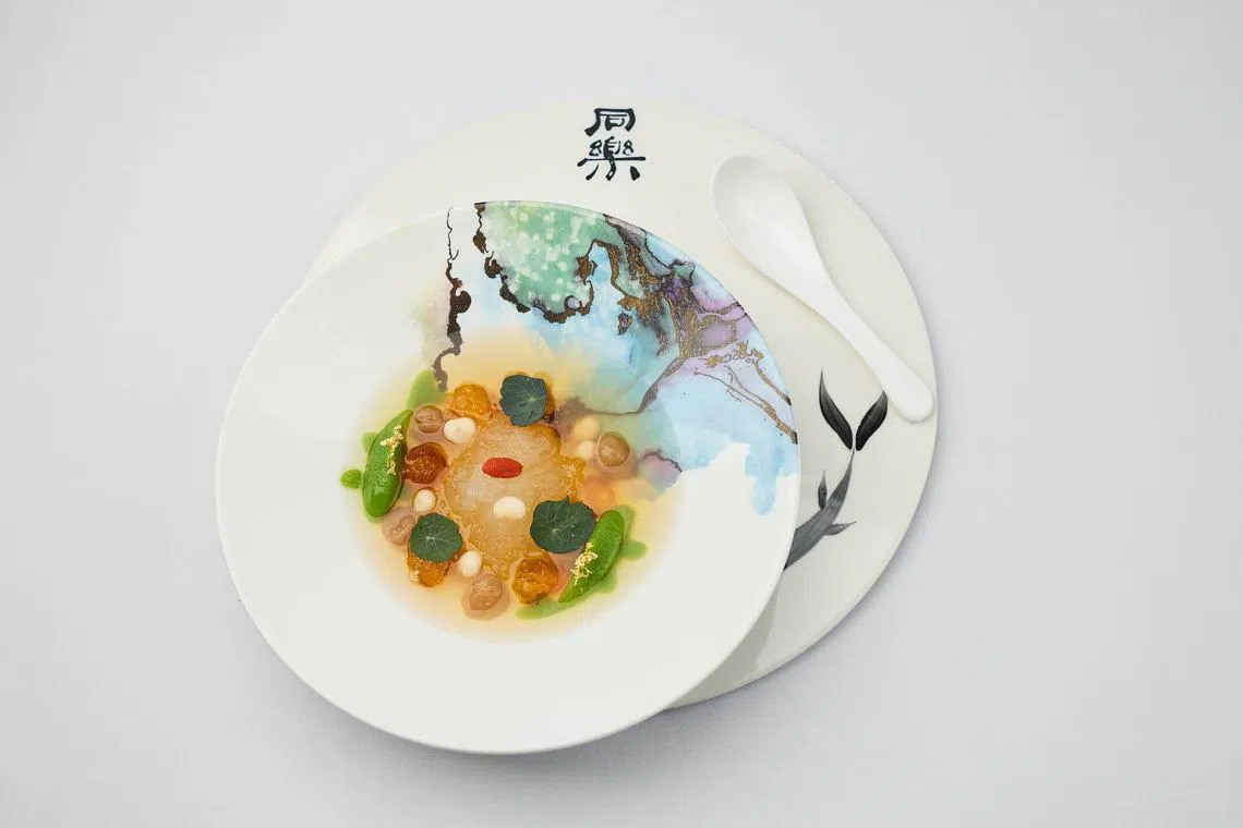 It also comes with bird’s nest in ruby peach tea syrup for desserts, an exquisite work of art inspired by French painter Claude Monet’s Water Lilies series. Kiwi jelly is shaped into koi fish, while fox nuts and other edible baubles double as stones in a pond. Somehow, it tastes just as elegant as it looks.
