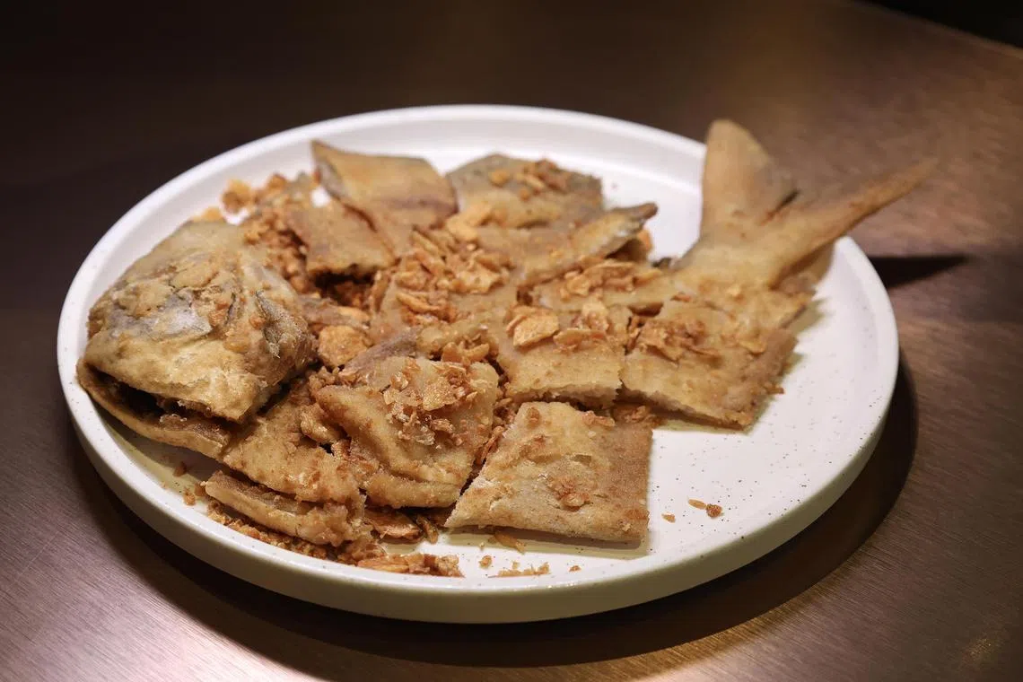 After you have eaten the deep-fried slices of pomfret, you may request the frame of bones to be cut up.