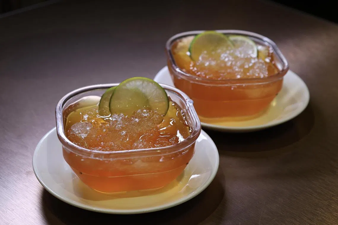 Chilled Oolong Ai-Yu Jelly With Green Lemon at Song Yue Taiwan Cuisine.