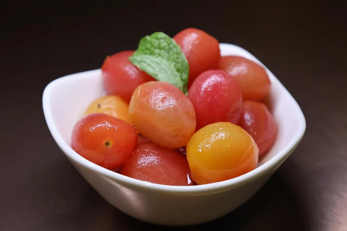 Pickled Cherry Tomatoes With Sour Plums at Song Yue Taiwan Cuisine.