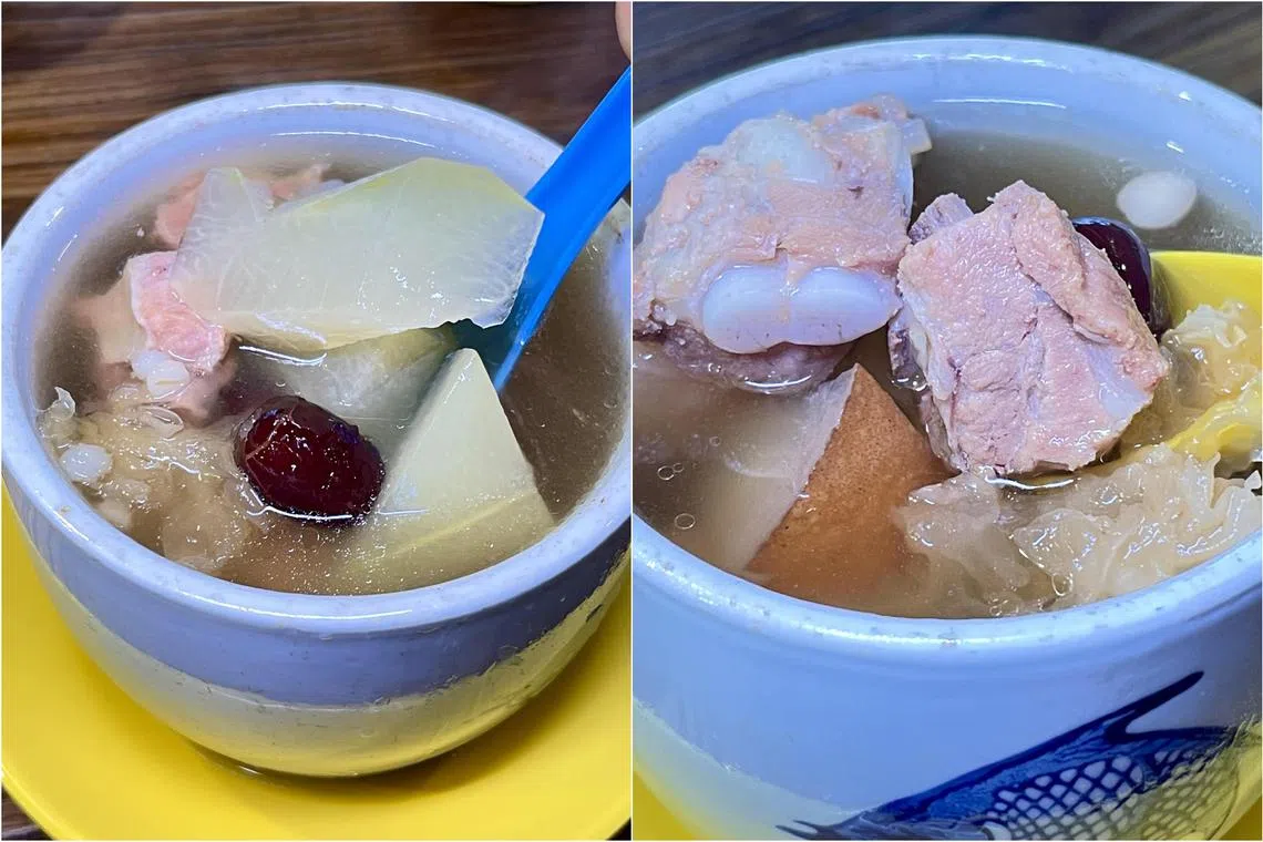 Winter Melon With Pork Rib, Dried Scallop And Barley (left) and the Pear Pork Rib Soup at Souperb.