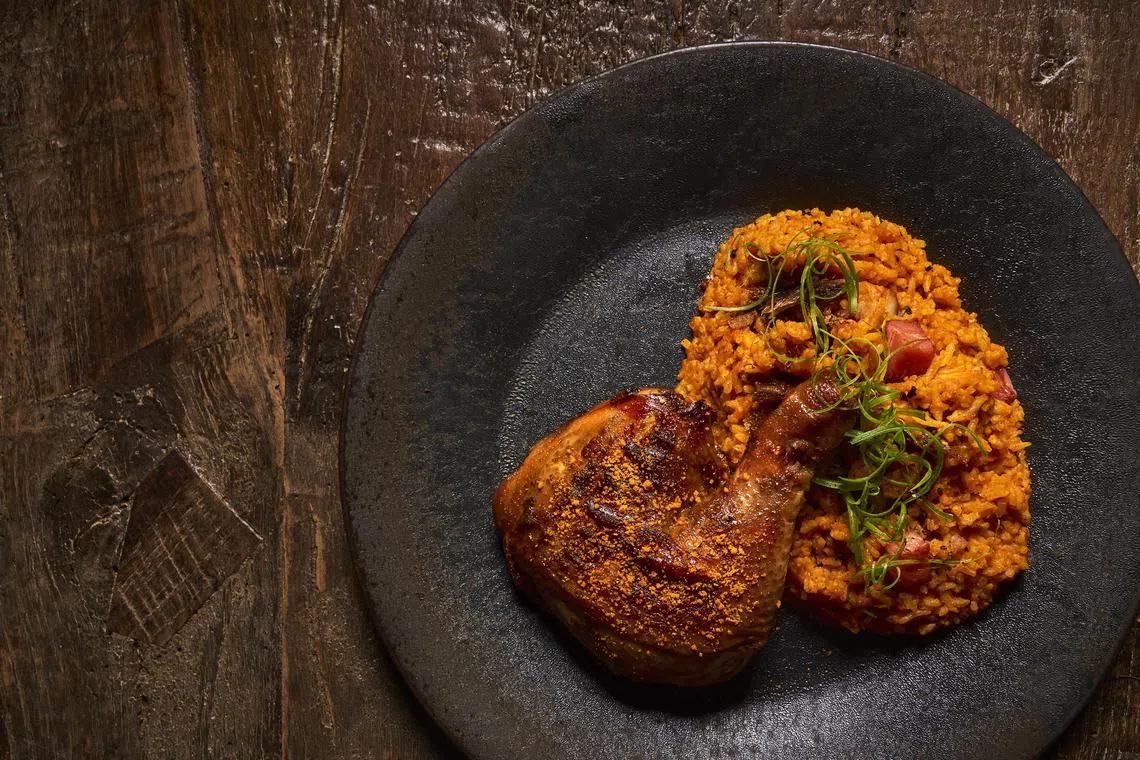 Other highlights include the tapalapa bread ($25) with goat’s milk ricotta, drizzled with house-smoked honey and a side of smoked bacon butter, and jollof rice ($35 for a single portion, $65 for a double) with tender sakura chicken and smoked pork belly.