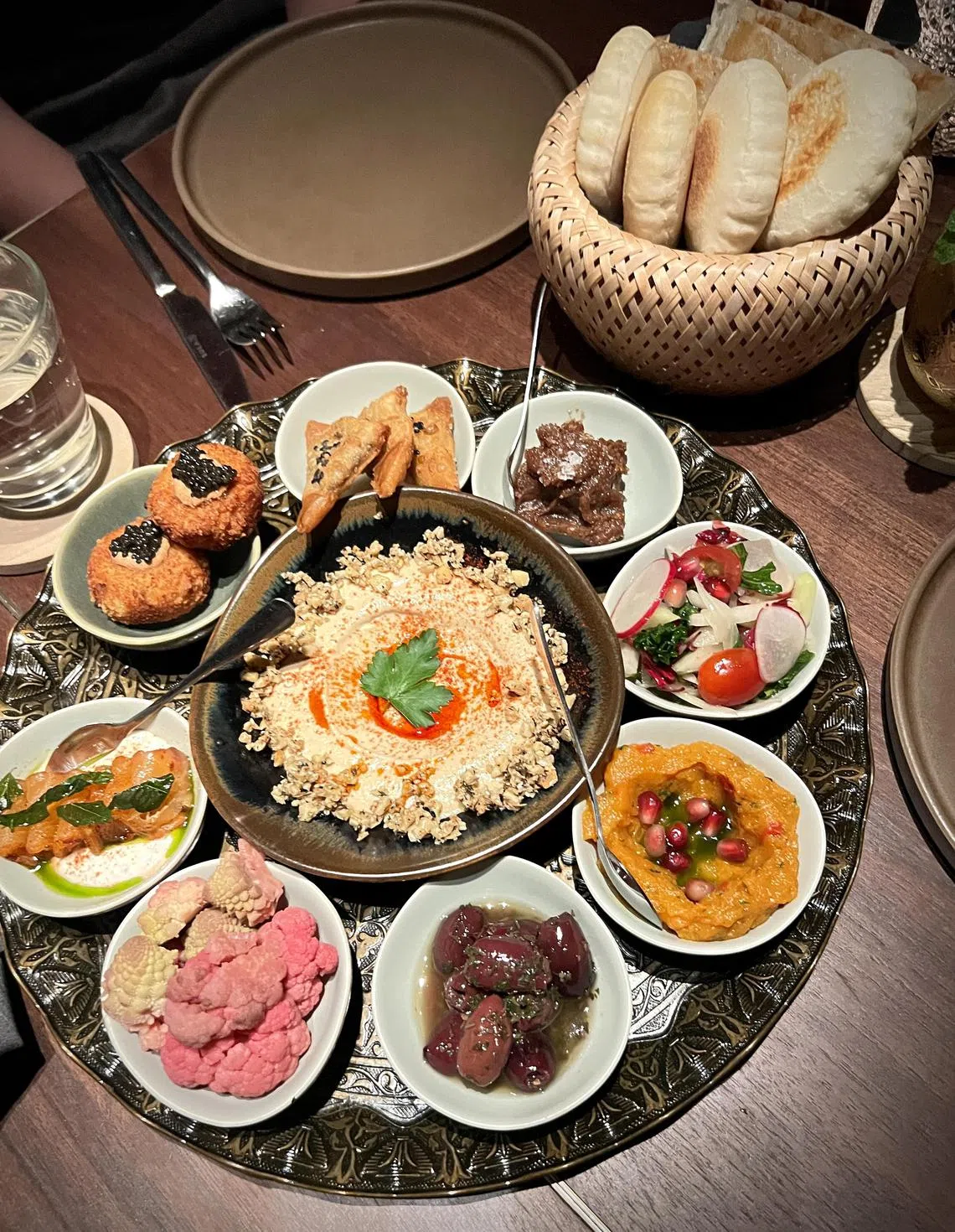The impressive mezze platter offers a selection of nine dishes as well as free flow of oh-so-fluffy pita and malawah breads.