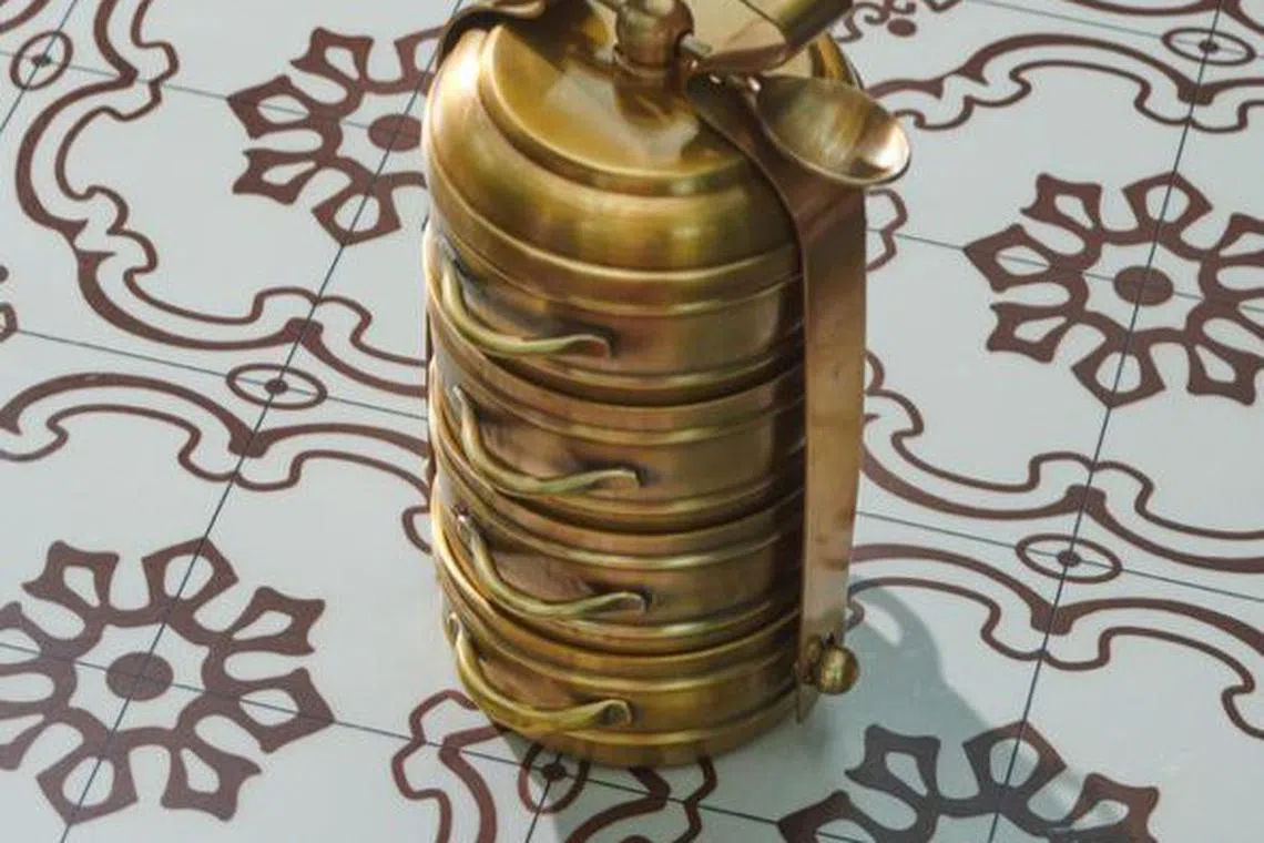 At Indian restaurant 27 Degrees West, lunch is served in a four-tiered tiffin carrier flown in from the western Indian city of Jamnagar, one of the country’s leading centres of brass production.