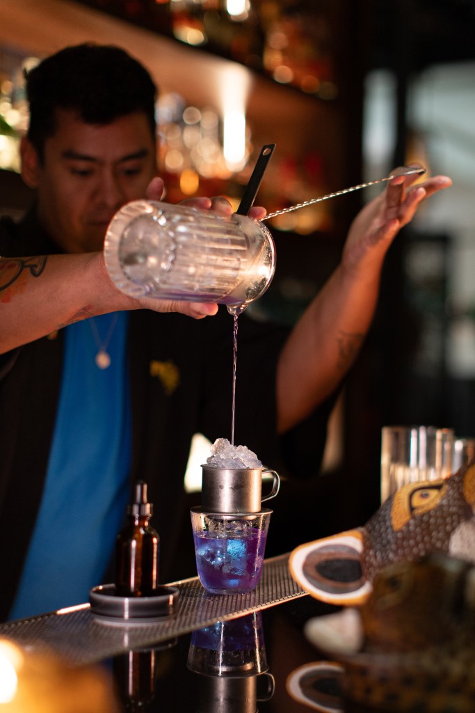 Take for example, Tato’s signature Negroni Balestrini, a drink including Argentinian gin, amaro and campari, and smoked with eucalyptus. An aperitif-style drink inspired by his Italian grandfather and his childhood memories in his hometown, Pinamar, it’s a must-have for anyone visiting his Buenos Aires bar (and now you can order it at the pop-up!). Then there’s also Yamanas. The libation, with whisky, gin, rose hip and Patagonian king crab bitters, draws inspiration from the Yamana people, the indigenous inhabitants of Ushuaia, noted for their early interactions with European maritime explorers.
