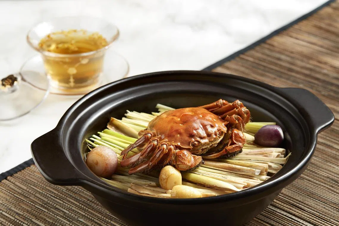 Prices range from $88++ each for Traditional Steamed Hairy Crab at Li Bai Cantonese Restaurant to $148++ for Baked Hairy Crab with Lemongrass served with Osmanthus and Wolfberry Ginger Tea at Yi by Jereme Leung.