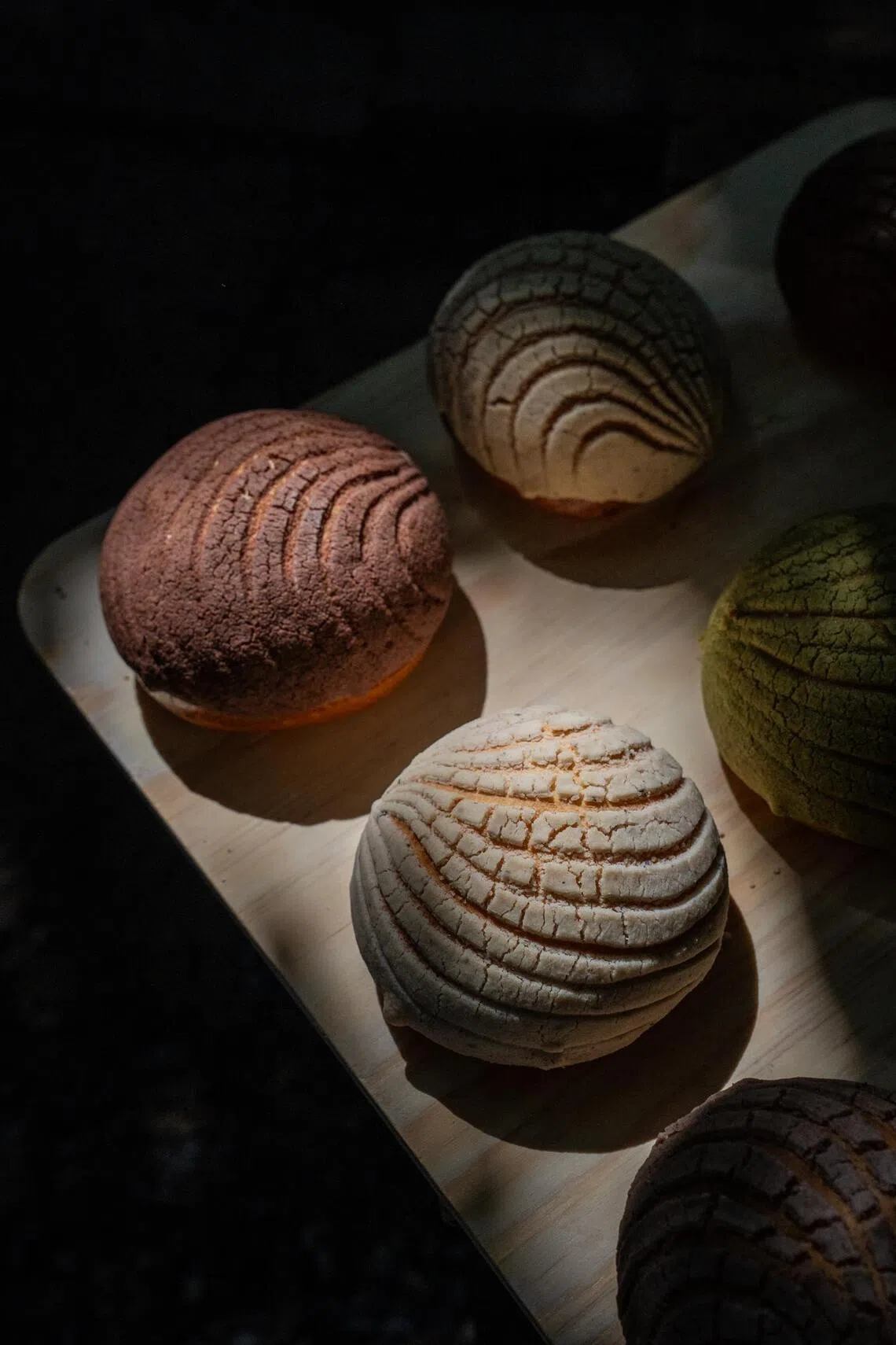 Conchas (enriched rolls with a sugary crust) served at Panaderia Rosetta in Mexico City.