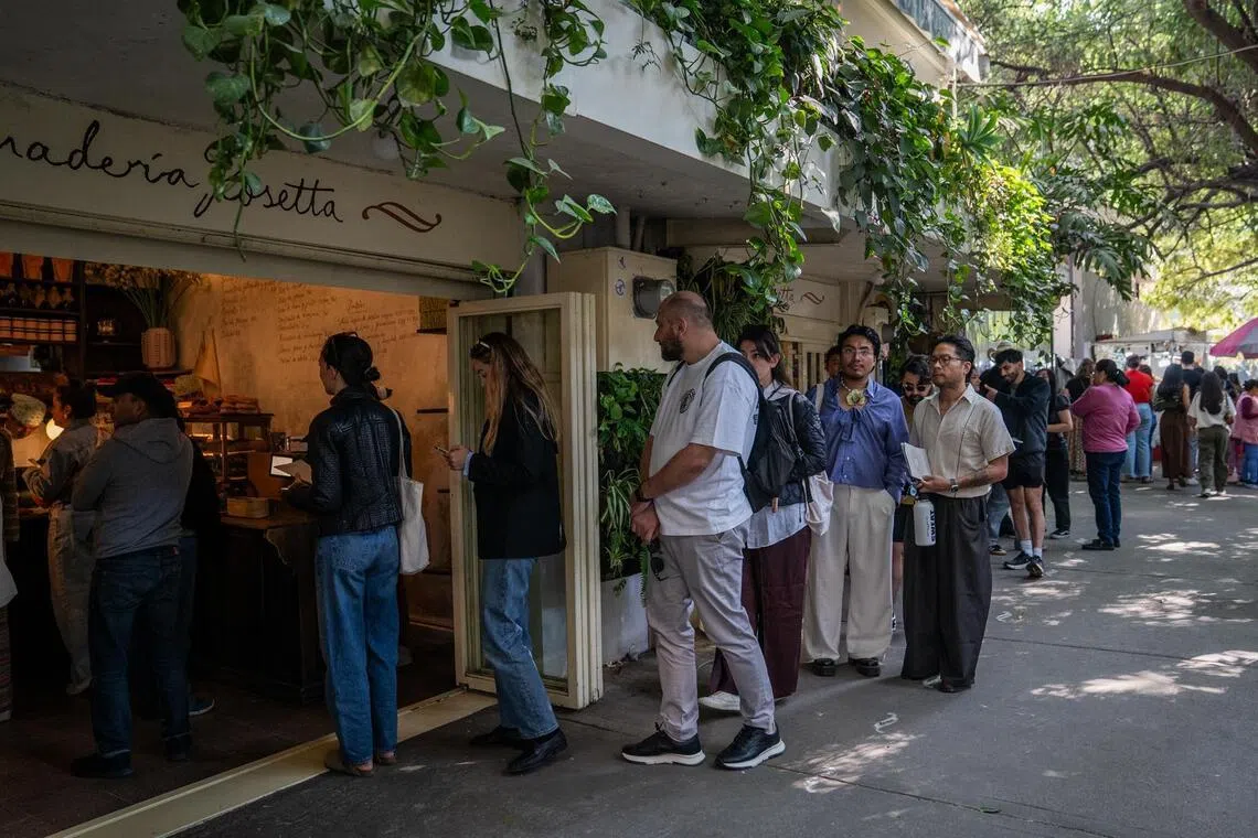People queuing to buy pastries at Panaderia Rosetta in Mexico City.