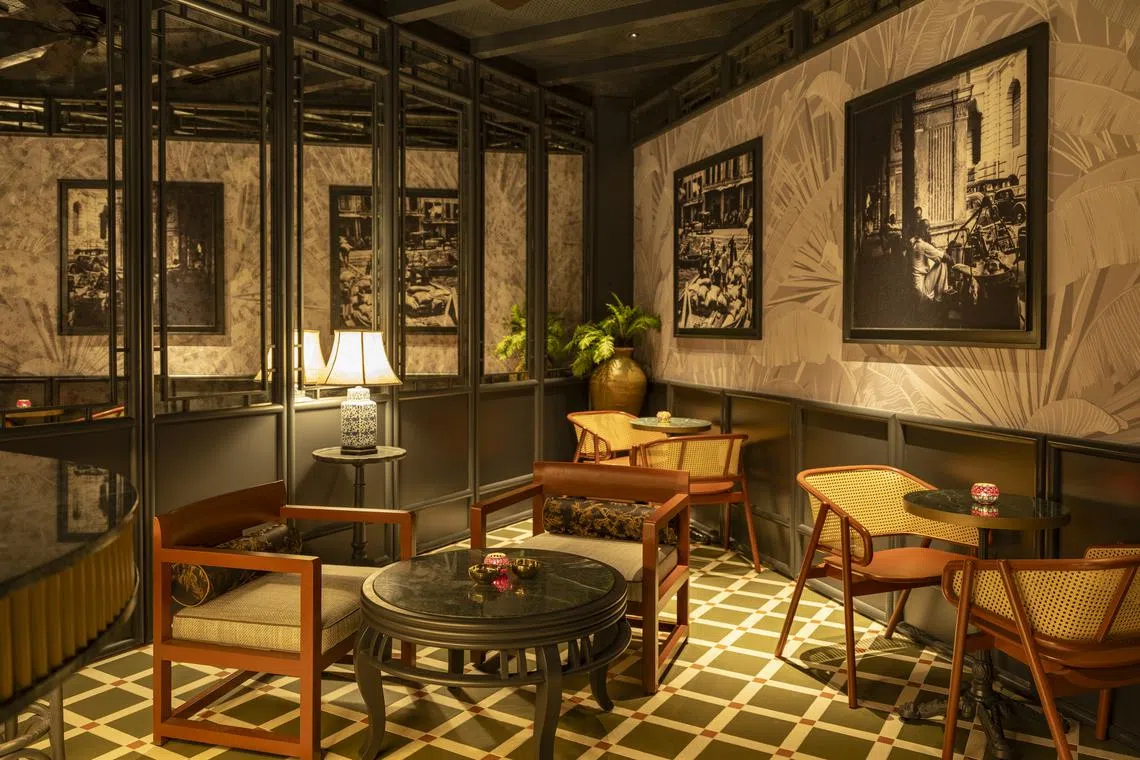 Restaurant 1819 Aliwal, named after the year Sir Stamford Raffles landed in Singapore, has a mostly black-and-white palette to evoke a sense of nostalgia.