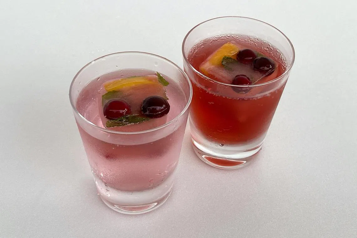 Fruity ice cubes add a festive touch to both alcoholic and non-alcoholic drinks.