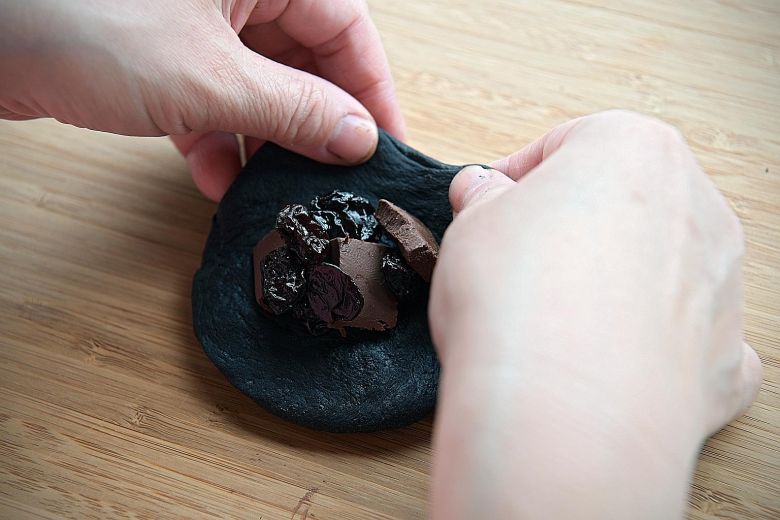 To make chocolate cherry charcoal buns