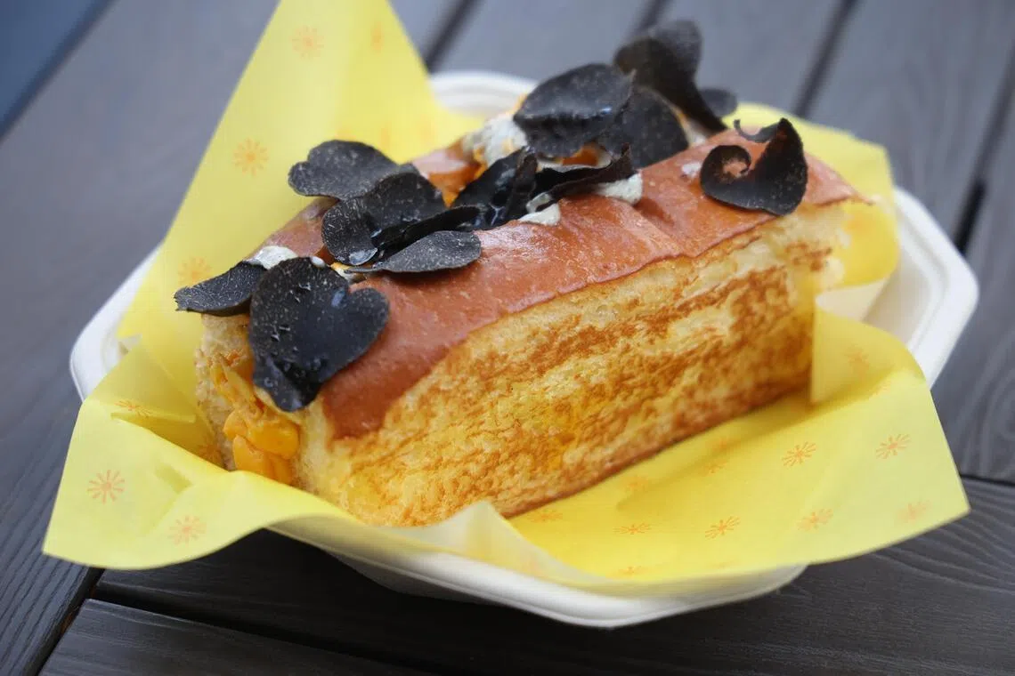 Le Matin Petit's sourdough brioche sandwich with scrambled eggs and truffle aioli.