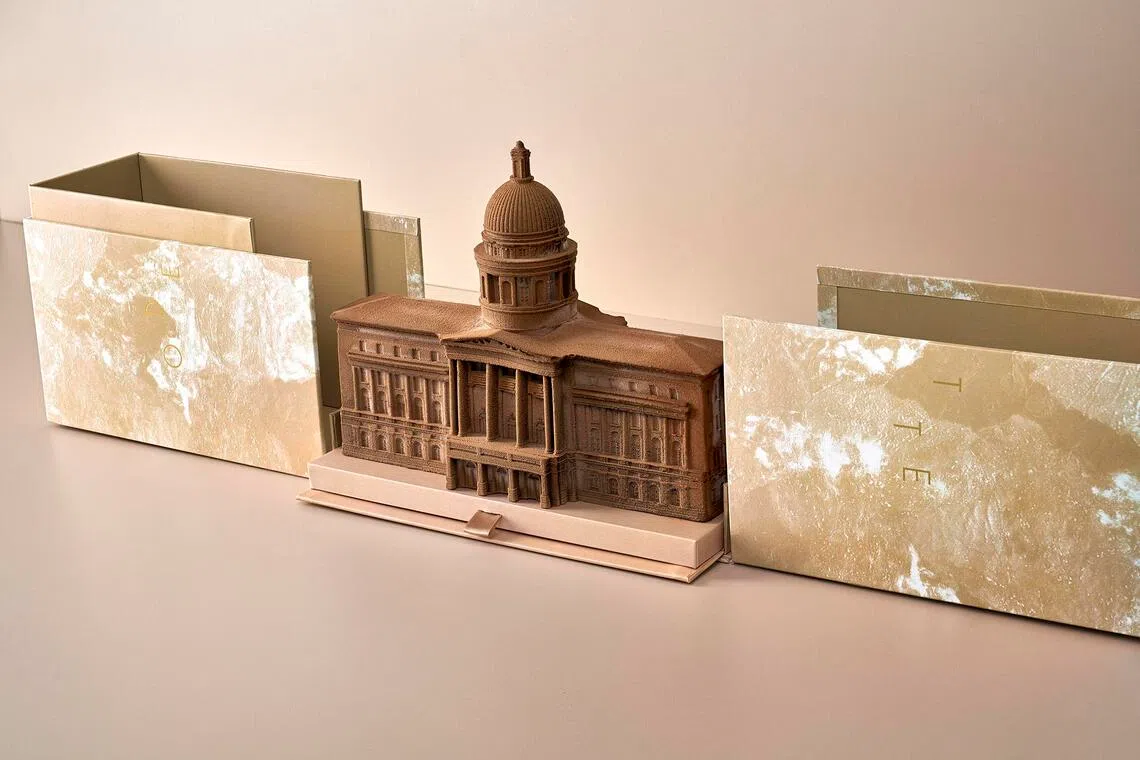 Odette's stunning cake is modelled after the National Gallery Singapore, which is home to the restaurant.
