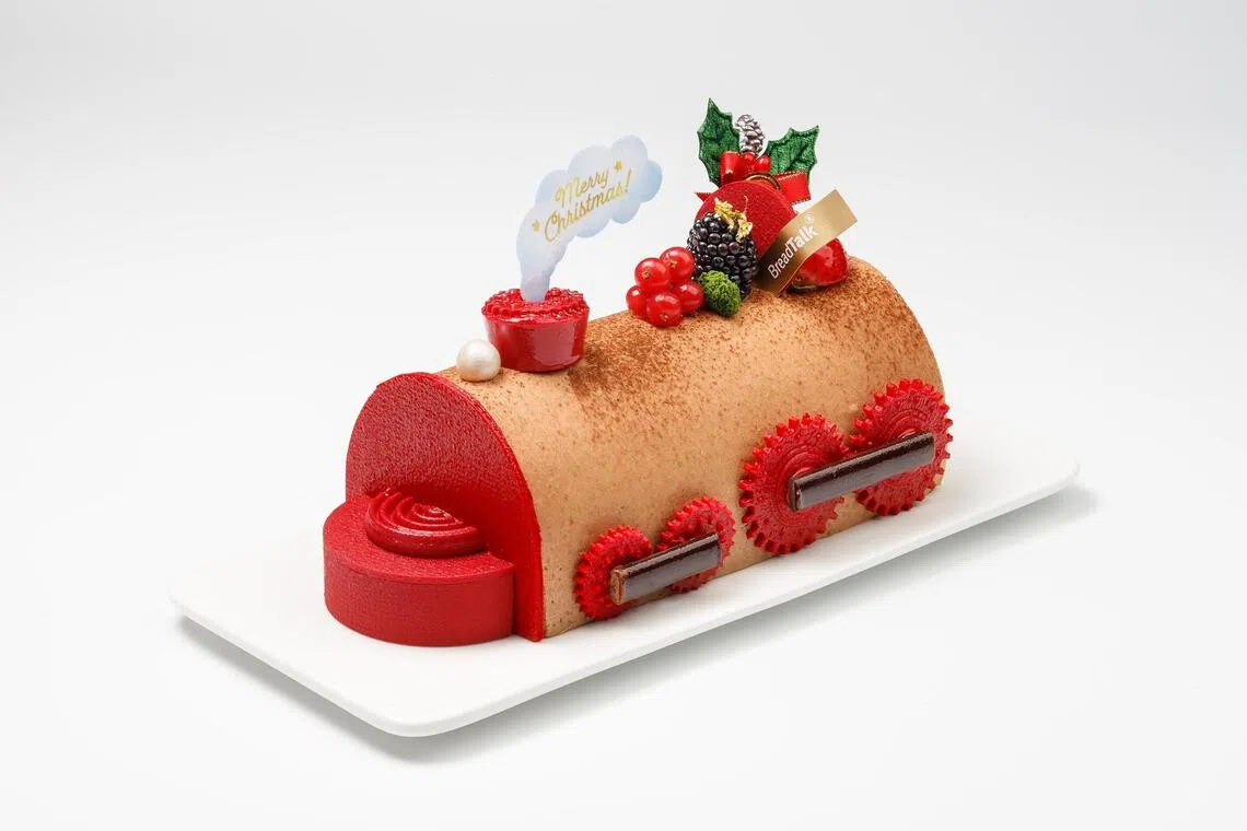 Alice Boulangerie and BreadTalk have gone for a train theme, while Orchard Hotel Singapore’s collection includes a house-shaped cake and one topped with a Santa hat.