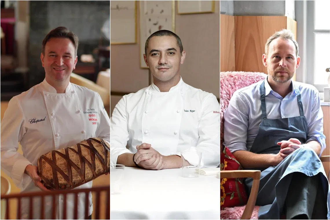 (From left) Chef Sebastien Lepinoy of Les Amis, Chef Julien Royer of Odette and Chef Bjorn Frantzen of Zen.