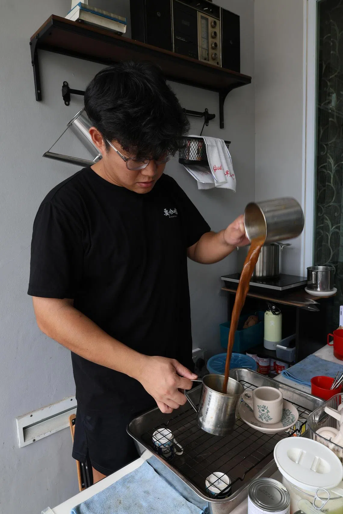 Mr Glenndon Khoo makes Nanyang kopi at home cafe Knead Kopi.