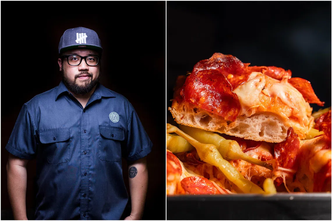 Home-grown chef Bjorn Shen retooled his Middle Eastern restaurant Artichoke and pivoted into what he calls a “New School Pizza Parlour”. On the right is his Beef Pepperoni Slab pizza.
