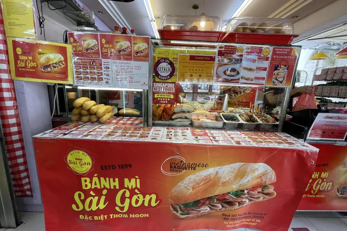 This stall has probably the biggest selection of banh mi fillings in Singapore, with 14 types to choose from, packed within a stubby Vietnamese baguette. They include roast pork ($9.90), mixed pork intestine and ear ($9.90), salt-baked roast chicken ($8.90) and fried fish cake ($8.90).