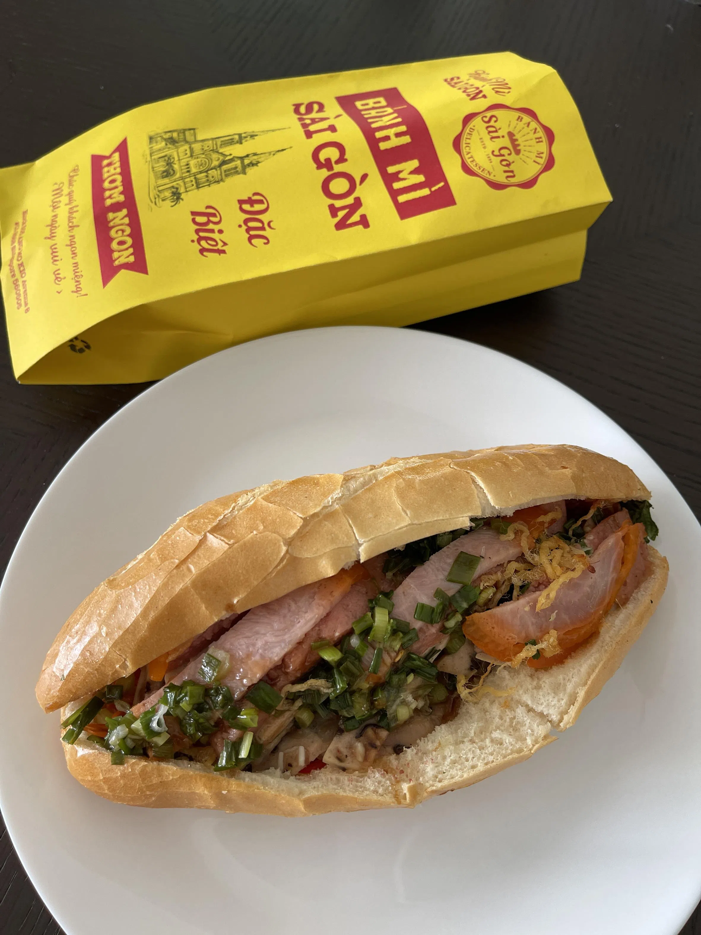 Ban Mi Saigon’s “special great” comes with different kinds of cured pork and a pate inside a stubby baguette.