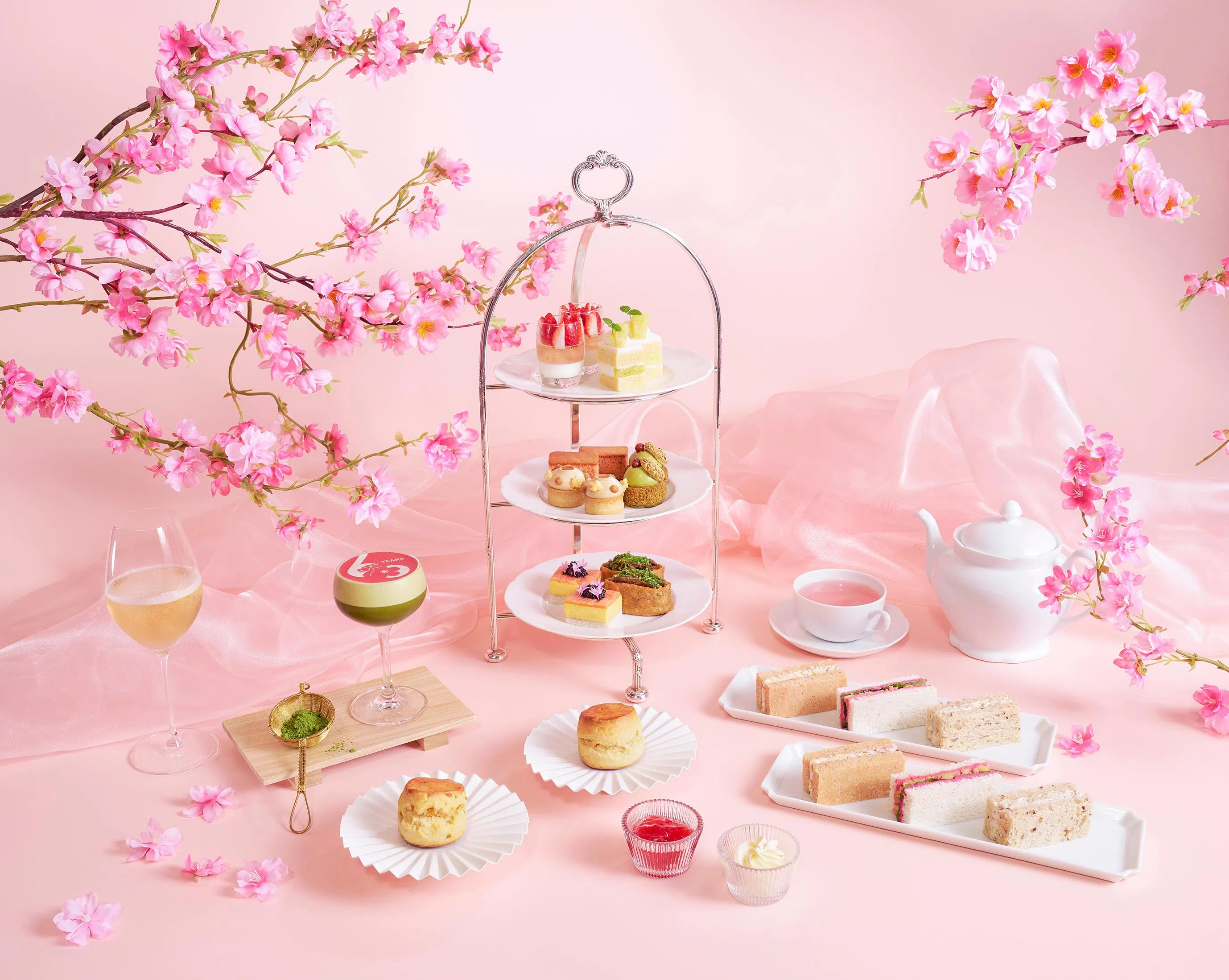 The seasonal Sakura Afternoon Tea at Raffles Hotel.