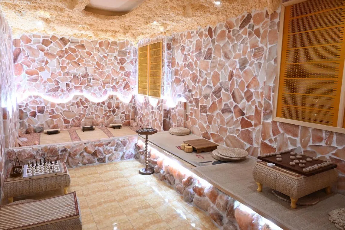 The pink Himalayan rock salt sauna at Harmony Wellness at Orchard Towers.