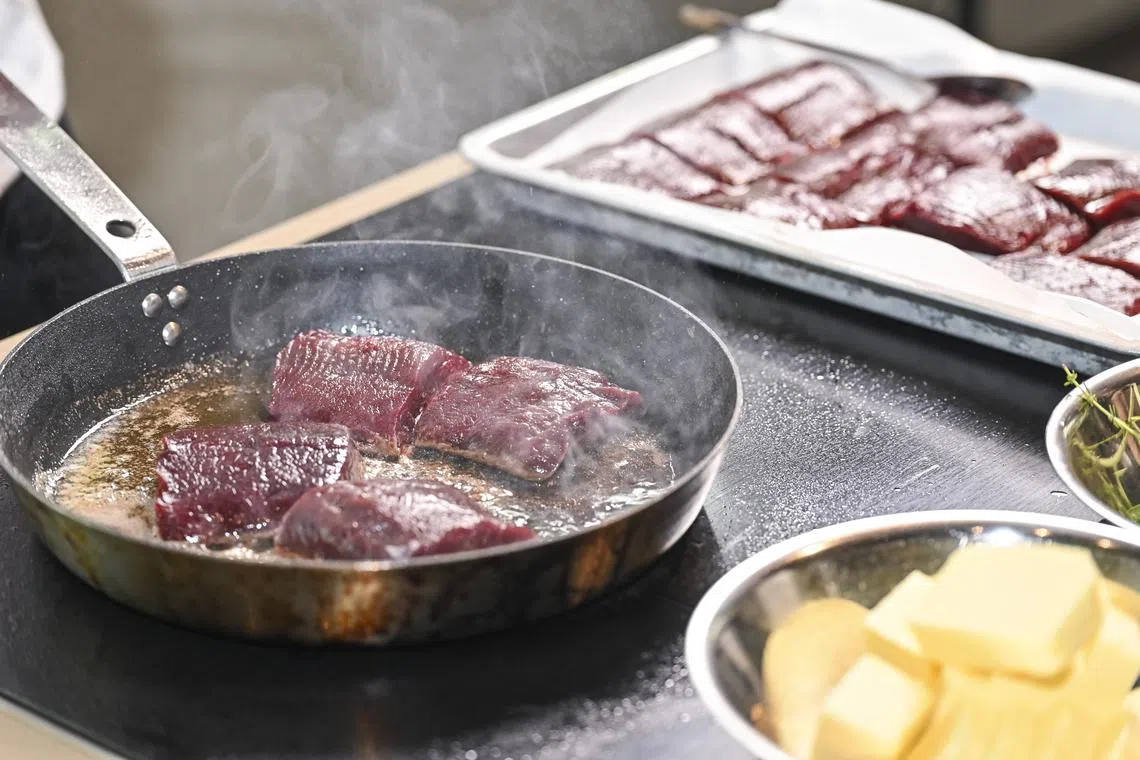Huber’s Butchery is selling three cuts of raw reindeer meat sourced from Lapland: The sliced pieces ($89 a kg) can be sauteed Asian-style with vegetables, or in butter and black pepper in the traditional Finnish way.