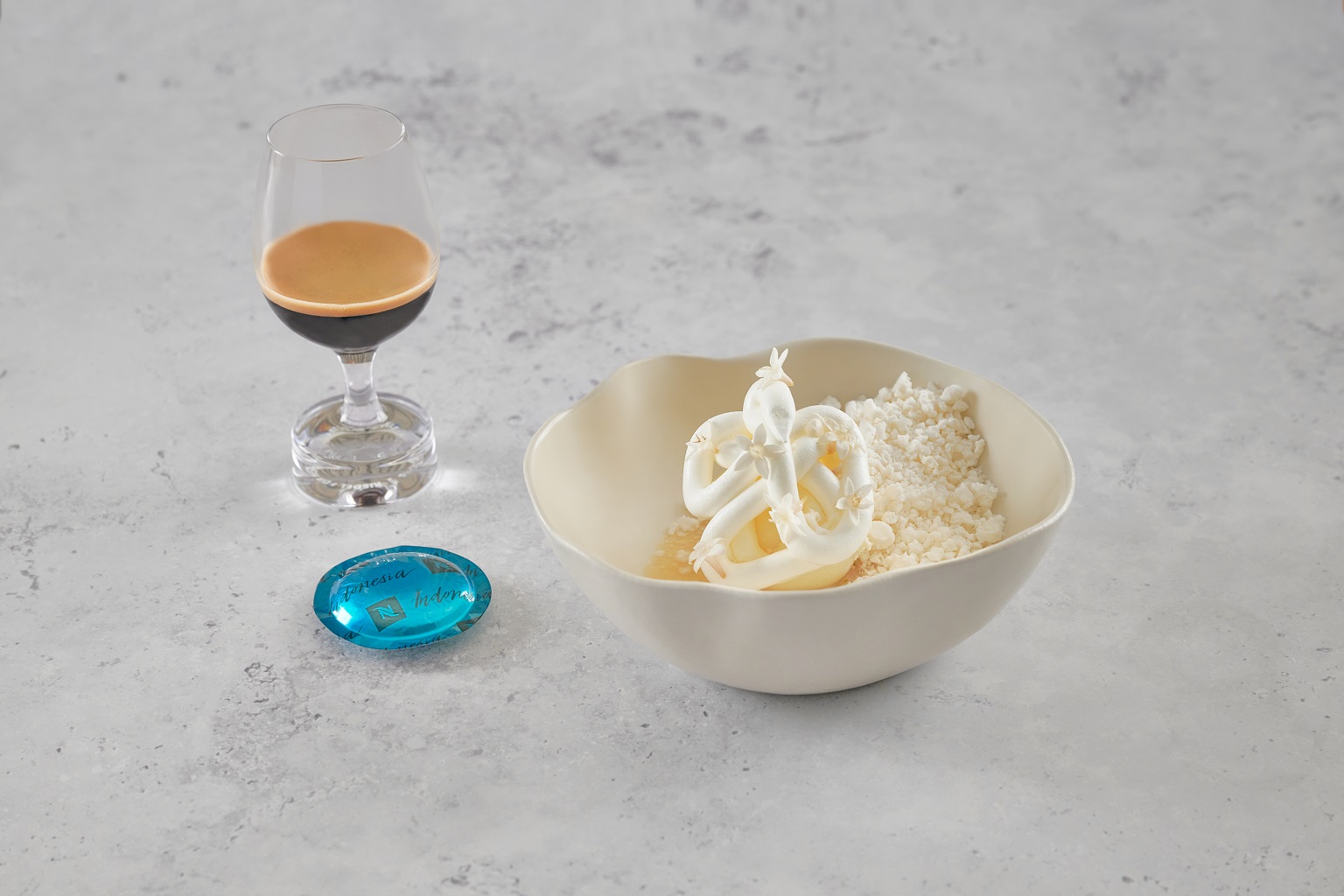 In one innovative dessert, he combines freshly churned yoghurt and tropical fruits, such as lychee, longan and rambutan, with natural coffee oil extracted from coffee grounds of Nespresso Professional’s Origins Indonesian blend. The Origins Indonesian blend was cultivated in accordance with Fairtrade standards in close relationship with the local farming community in central Aceh in Indonesia. Through such partnerships with local farming communities, Nespresso is able to provide a premium to the farmers on top of sales to invest in community development projects, such as access for farmers to a pension savings scheme, crop insurance, and youth protection initiatives.