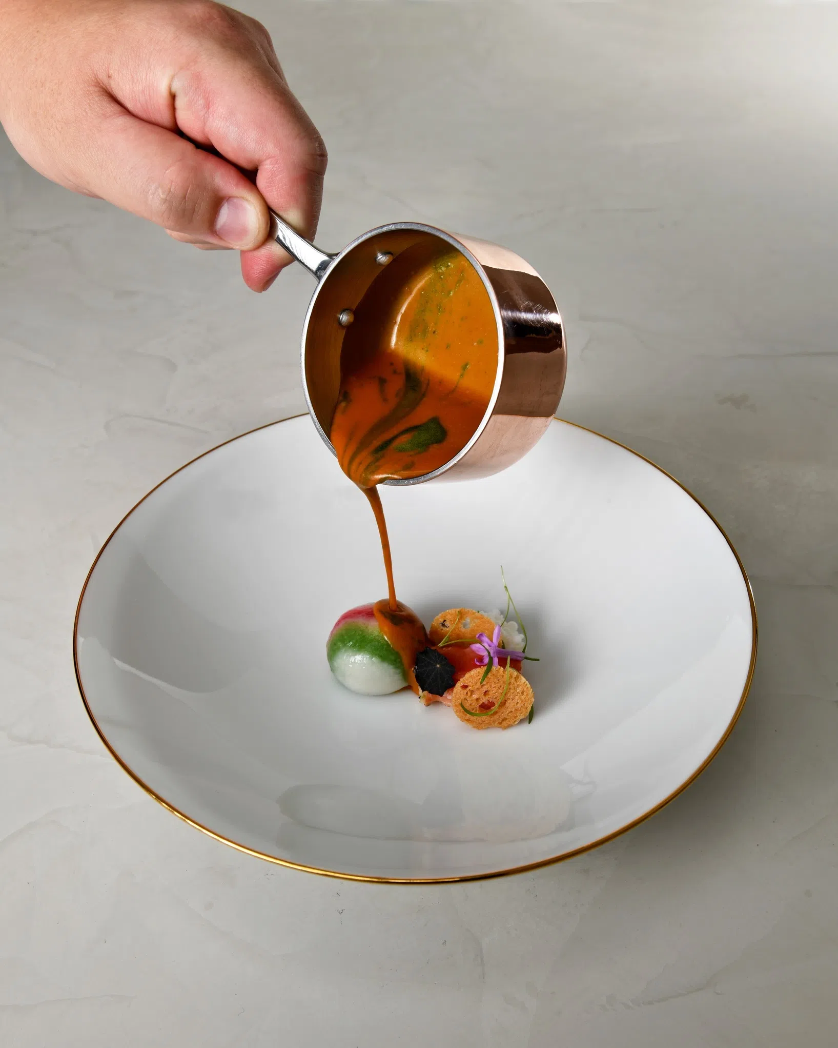 Lettuce gazpacho with crab doughnuts from Marguerite.