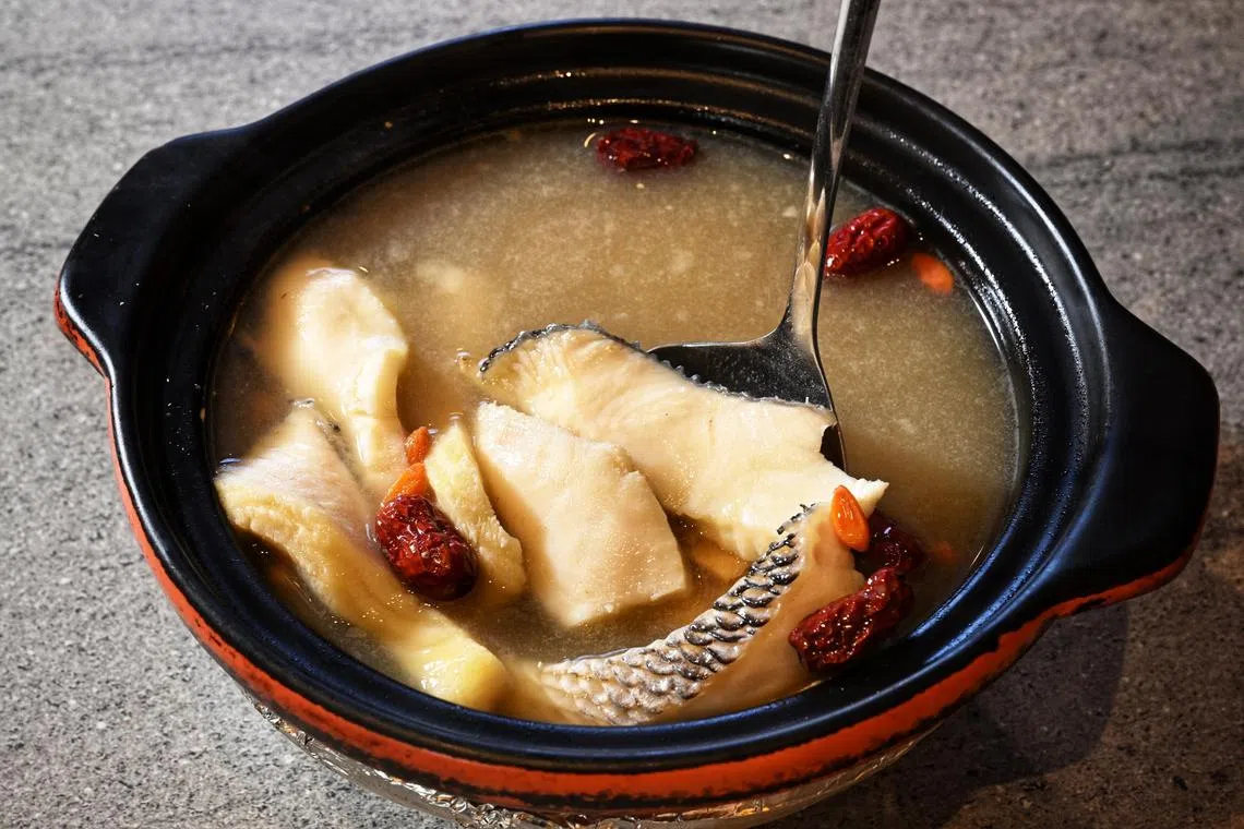 Sliced Fish Herbal Soup at Lau Wang Claypot Delights.