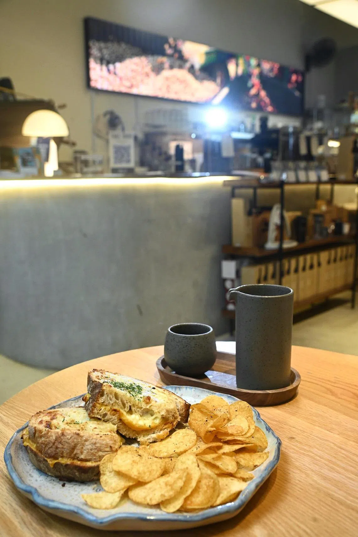 Grilled Sourdough Sandwich and Filtered Coffee at The Caffeine Experience.