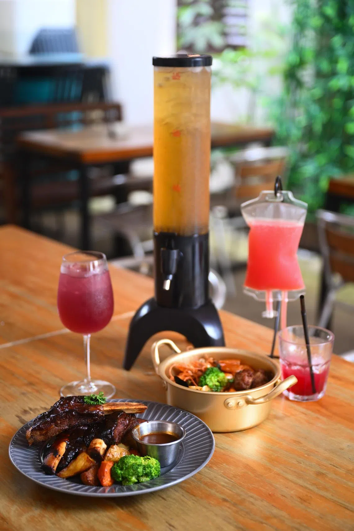 There are also spooky-themed mocktails, a nod to the restaurant’s proximity to the Jalan Kubor Cemetery situated across Victoria Street. Boo Hag ($16+) is a concoction of blue peaflower tea, yuzu, grape and soda. There is also Vampire Venom ($15+), made with strawberry, mint and orange, and served in an IV drip bag.