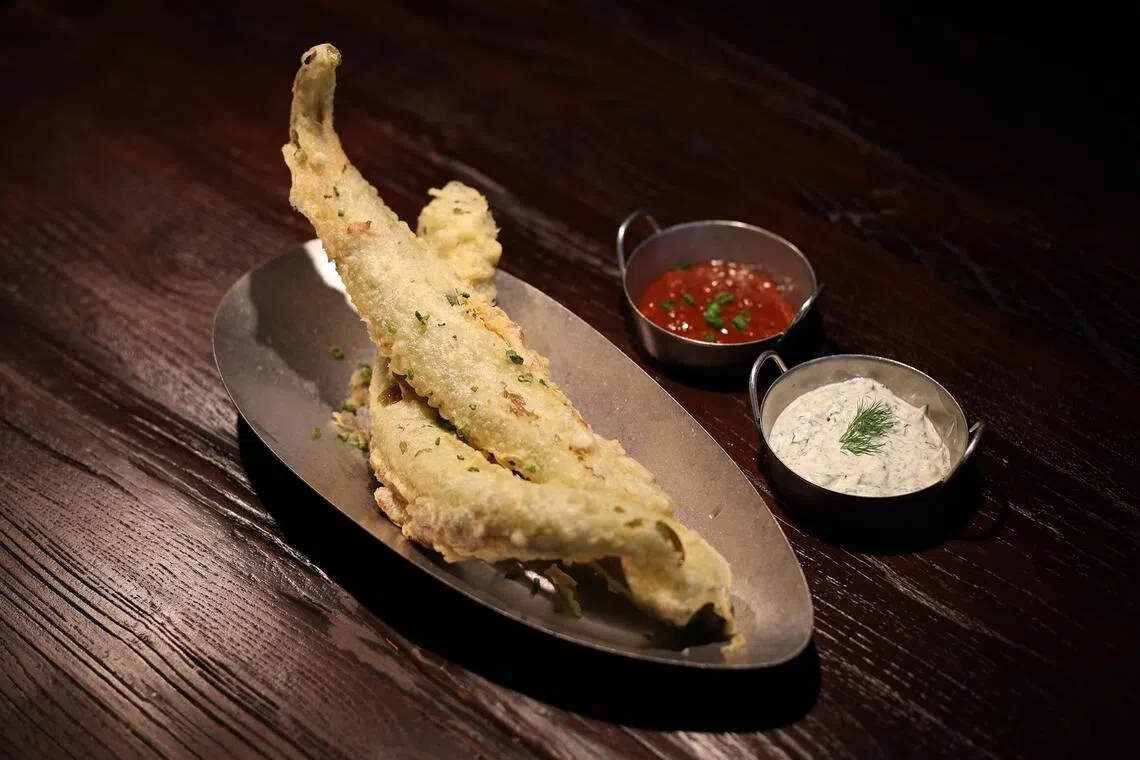 Gochu’s Crispy Stuffed Chilli ($18 for two), which is chilli pepper stuffed with minced pork before being battered and deep-fried.