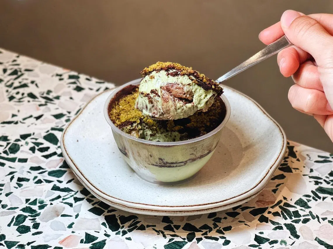 Chicco Pasta Bar’s pistachio and coffee mascarpone tiramisu.