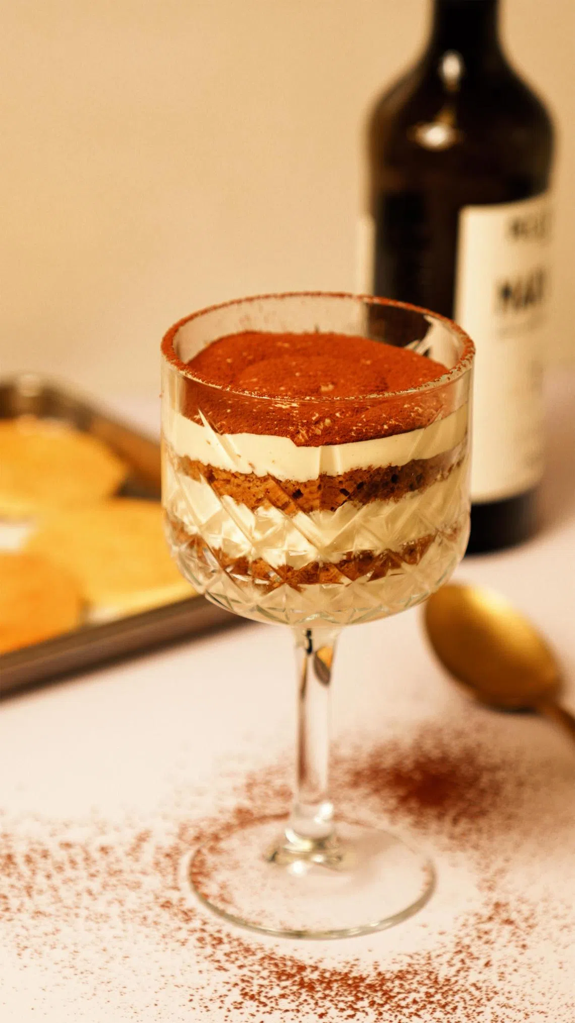 Coffee and Marsala wine-soaked ladyfingers are layered with creamy and light mascarpone, and dusted with cocoa powder.