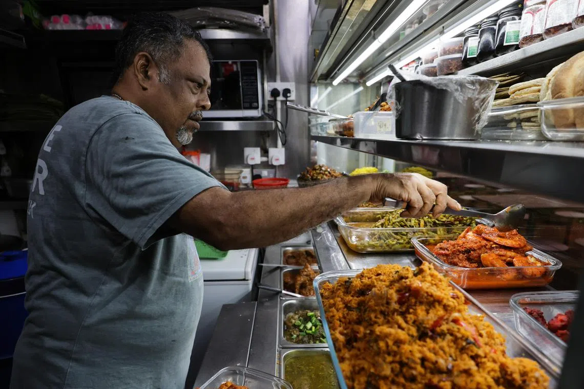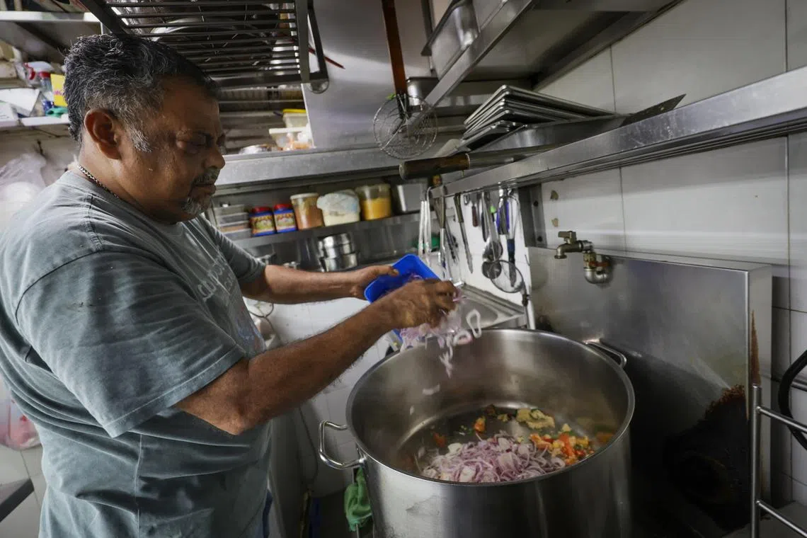 Mr Odi, founder of Rasa Raja Bojun Sri Lankan Food, preparing a variety of dishes at his stall located in Tekka Centre.