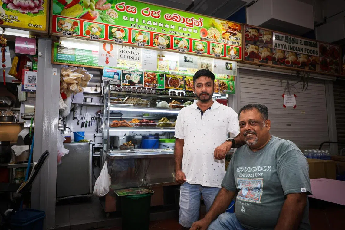 Mr Odi (right) has been running a Sri Lankan food stall at Tekka Centre for more than 15 years. Now, his friend Sam Dharmasiri helps him with day-to-day service.
