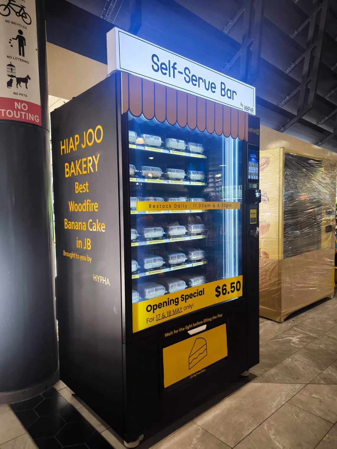 Next, Johor Bahru’s famed Hiap Joo banana cake crossed the Causeway and was sold via a vending machine at Senja Hawker Centre