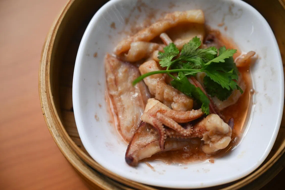 There is steamed Coconut & Salted Egg Layer Cake ($5.80); Crispy Popiah Rice Rolls ($6.80), which are cheung fun stuffed with popiah filling and crispy wafers; and Har Cheong Squid ($5.80), squid steamed with fermented prawn paste.
